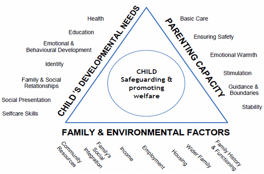 The Assessment Framework is a tool that social workers use for assessing children in need and their families which requires a thorough understanding of children’s developmental needs, the capacity of parents and carers to respond appropriately to these needs, and the impact on that capacity by wider family and environmental factors (physical, social, emotional, economic, etc).